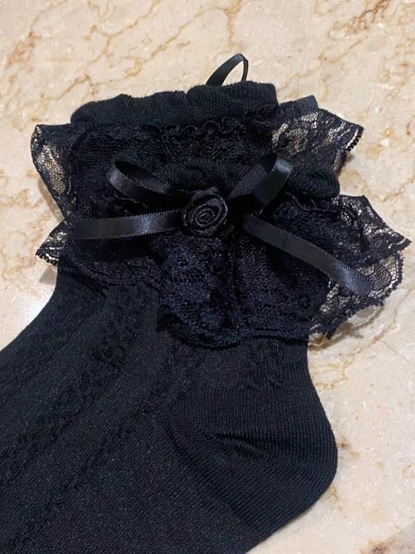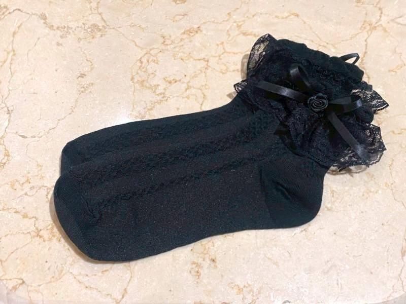 ★サテンの巻きバラがついた華やかでキュートなショートソックスです。